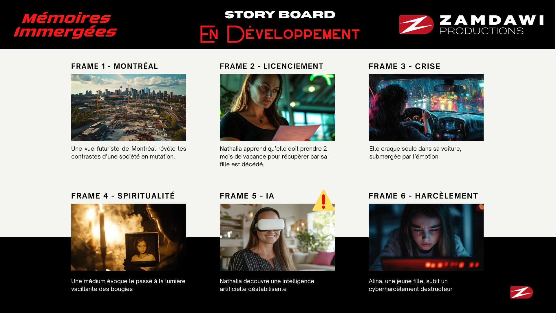 Désespérée, elle accepte de participer à une thérapie expérimentale dirigée par une intelligence artificielle, le Dr. Lucas. Ce programme, développé par une start-up luxembourgeoise, promet de « réécrire les souvenirs traumatiques » grâce à un casque d’hypnose immersive. Nathalia se retrouve plongée dans une réalité virtuelle où elle revit des moments clés avec Alina, mais aussi des pans refoulés de son passé : la mort de son premier mari sous les bombes, son exil chaotique, et les tensions avec son ex-mari québécois, Sylvain, qui l’accuse d’avoir négligé leur fille.